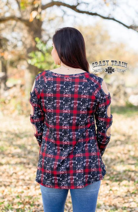 Oh Work it Plaid! Very soft and cute plaid long sleeve shirt with cutout in the arms. Perfect for transitioning into those winter months.
