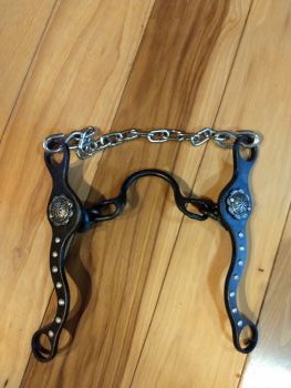 This is a Paul Petska chain port bit. The shank on this bit is the original shank that Petska first came out with. The mouthpiece is a chain mouthpiece with a port in the middle of it. These bits are great for any discipline of riding that you do. From barrel racing to team roping to cutting to trail riding to riding young colts - you can trust that your Petska bit will be your best asset in your bit collection.