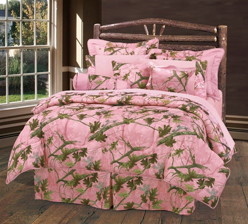 Pink camoflauge bedding set is absolutely perfect for the outdoors woman/girl that you know that love pink! With just the right amount of detail along with the pink background and lifelike branches and leaves she may just think she is outdoors.