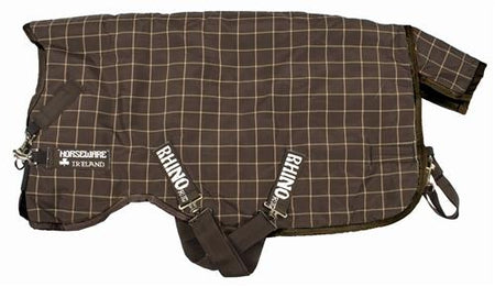 The Rhino Wug is an award-winning design in an attractive new green check. This Waterproof and Breathable Turnout has a high cut neck acting as a neck warmer which retains warmth and keeps out rain - yet allows the horse enough freedom to graze. With the patented 'V' front closure system of the Rambo Wug that transfer's pressure above the point of shoulder, the Rhino Wug offers value for money that is really tough to beat!