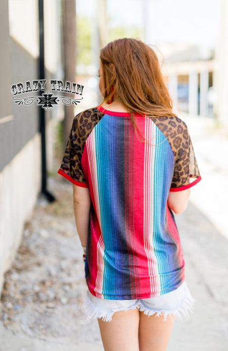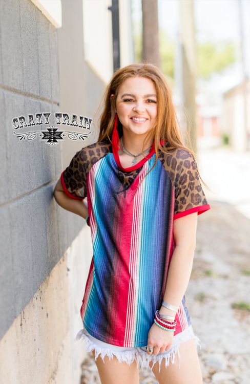 Be ready for the 4th of July with this awesome top. Americana serape vibe with our FAVORITE mesh sleeves in leopard print. The mesh sleeves on this shirt allows the breeze to come through and will keep you cool on your fourth and summertime adventures. Fits true to size.